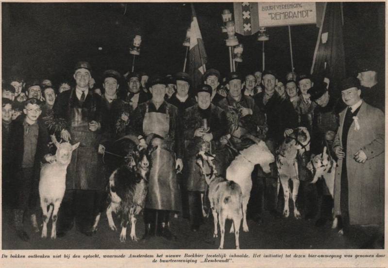 Pas in 1928 besloten de brouwers tot een gezamenlijk en vast introductietijdstip: de tweede donderdag van december. Dat ging soms gepaard met feestelijke optochten of bockbieravonden. Uiteraard ontbraken bokken daarbij niet, zoals hier in Amsterdam.